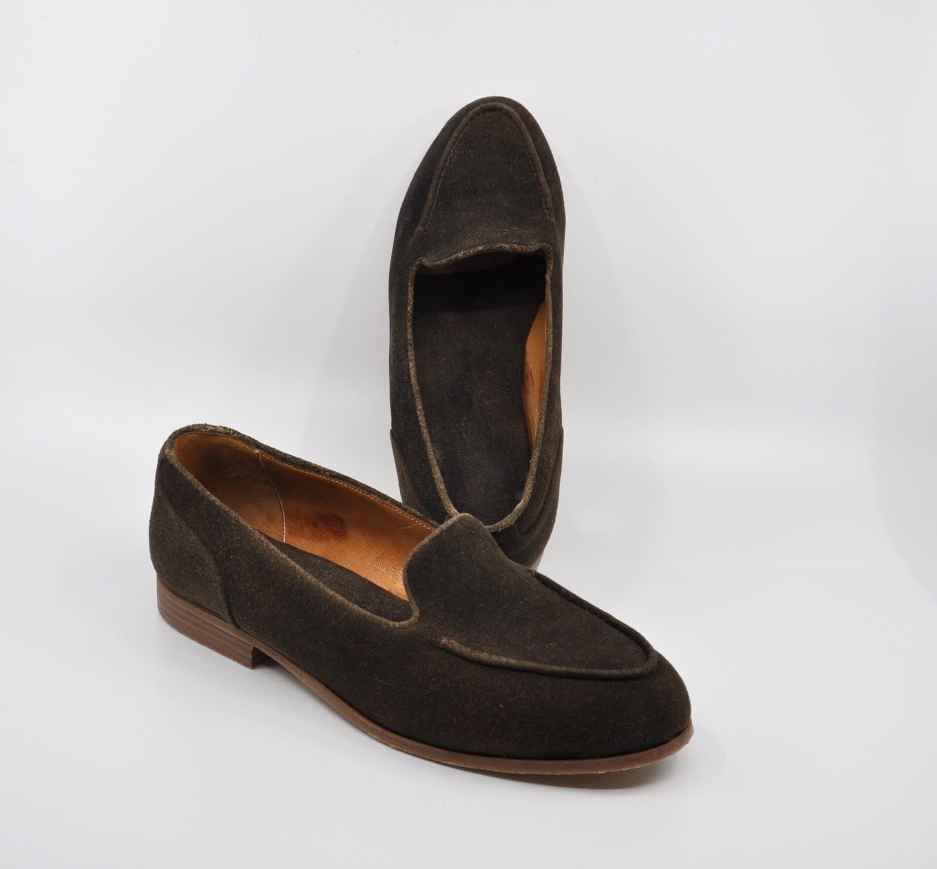 Cervo Volante deerskin shoes are designed and handcrafted by Piret Puppart at Silvano Sassetti in Monte San Pietrangeli, Italy. Welt sewn and with a Goodyear Flex cork sole for a soft roll.