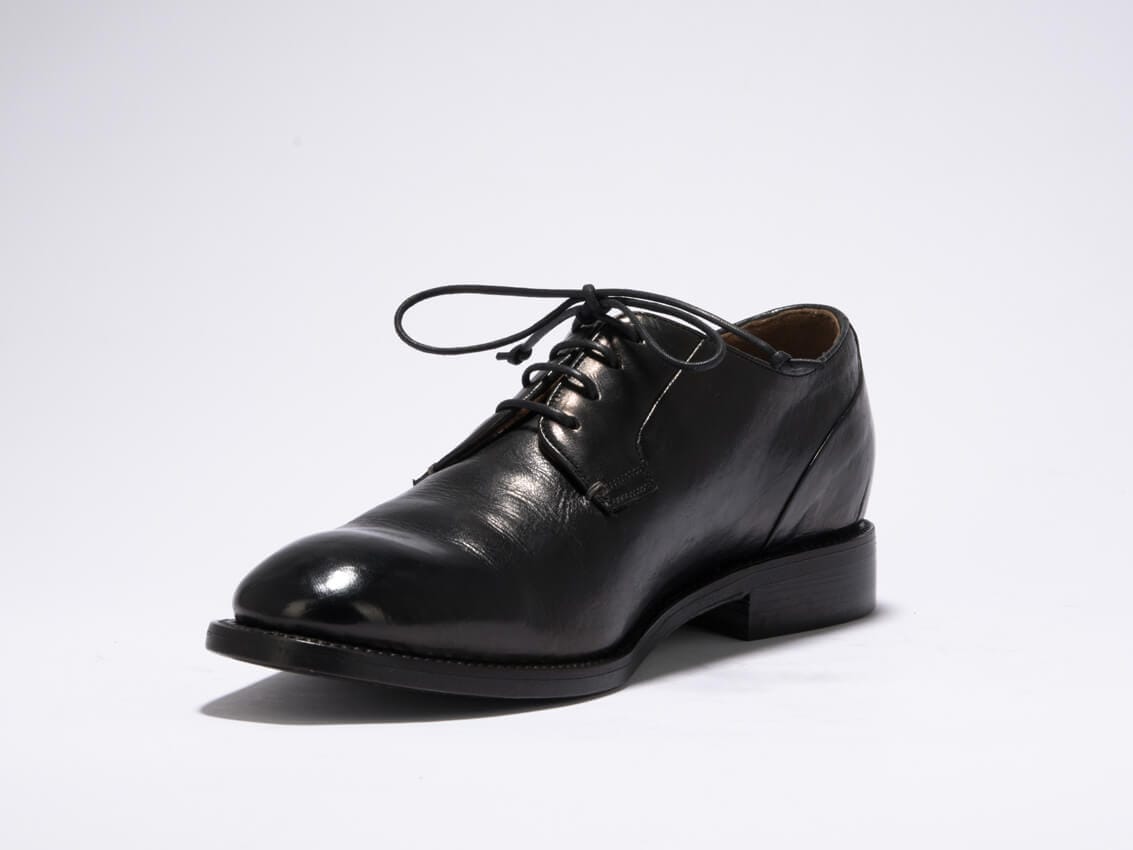Elegant, mit schlanker Silhouette und keiner Naht zu viel. Ein rahmengenähter schwarzer Hirschleder-Derby, ein Männer-Halbschuh fürs Business und den stilsicheren Abendauftritt.