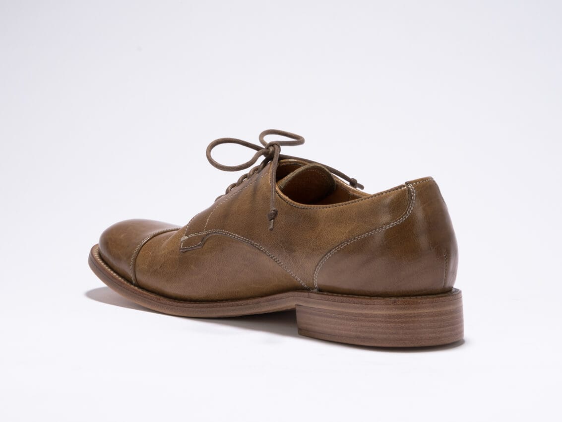 Cervo Volante Hirschleder-Schuhe werden von Piret Pupart entworfen und handgefertigt bei Silvano Sassetti in Monte San Pietrangeli, Italien. Rahmengenäht und mit einer Goodyear-Flex-Sohle aus Kork für ein weiches Abrollen.